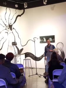 Dana Gioia at the Central Library, New Alchemy at Lestat’s, Cheapest Flight to La Bodega and Page to Canvas to Stage Pics