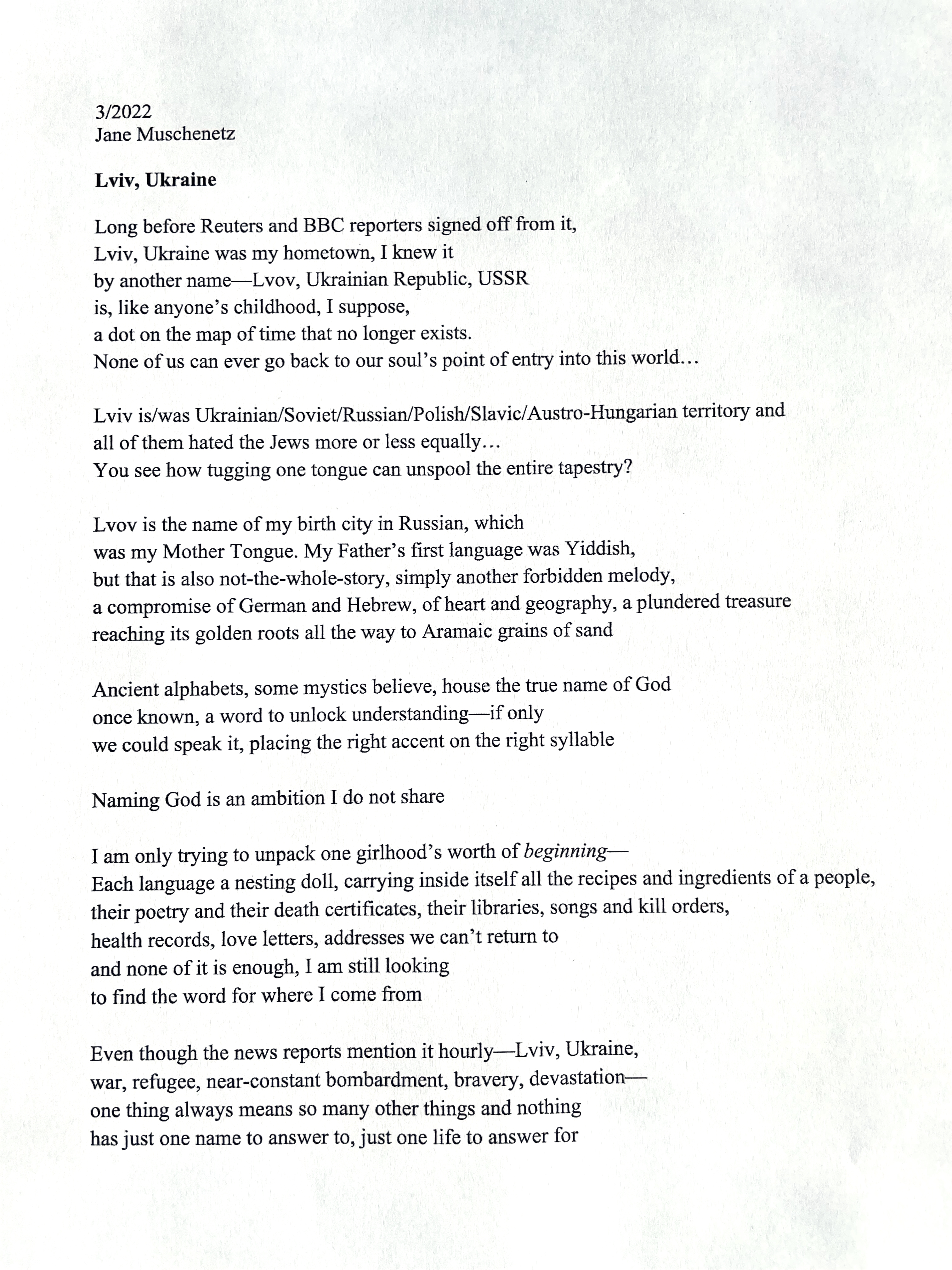 “Lviv, Ukraine” was first published in Mom Egg Review, May 2022. Click or zoom to read: