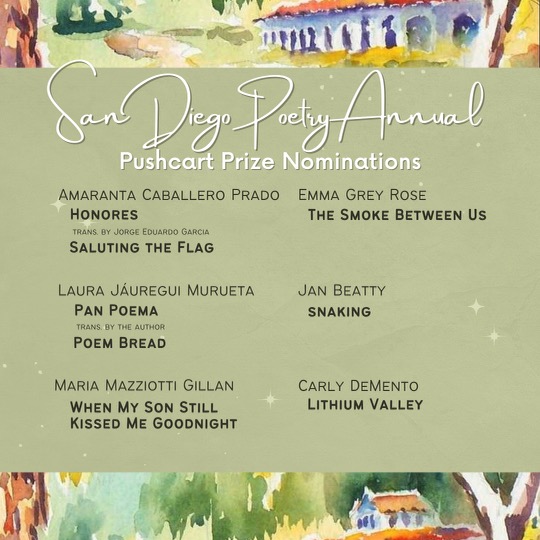 Happy New Year, and congratulations to our Pushcart Prize nominees from San Diego Poetry Annual!